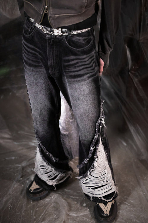BLR 破壞洗滌寬牛仔褲